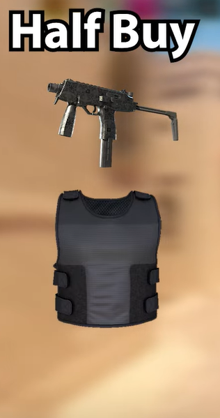 | Half Buy | Pistols + light armor | Prep for next full buy |