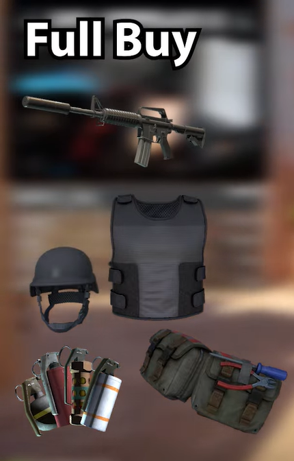 | Full Buy | Rifles + armor + utility | Highest win chance |