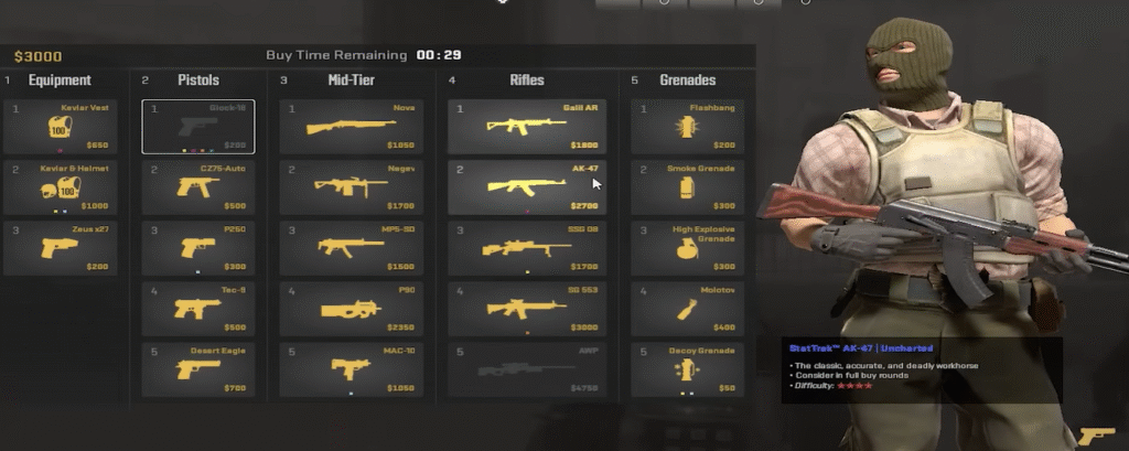 The CS2 economy controls how much money players earn and what your team can afford each round — rifles, armor, grenades, and equipment.
