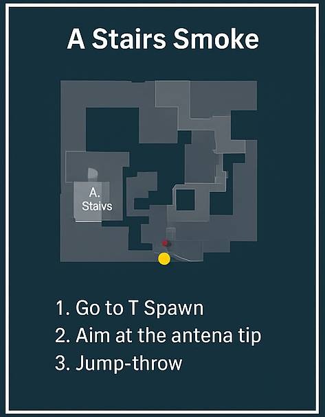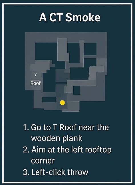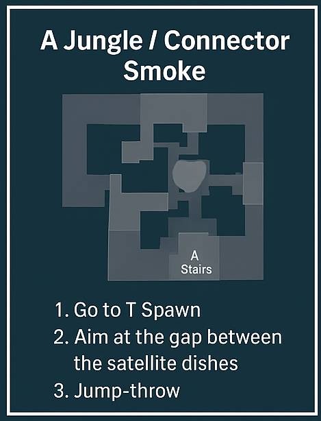 Use the Top Mid Smoke from T-Spawn to block the Window AWPer. When combined with Catwalk or Connector pressure, this gives strong early-map control for your team.