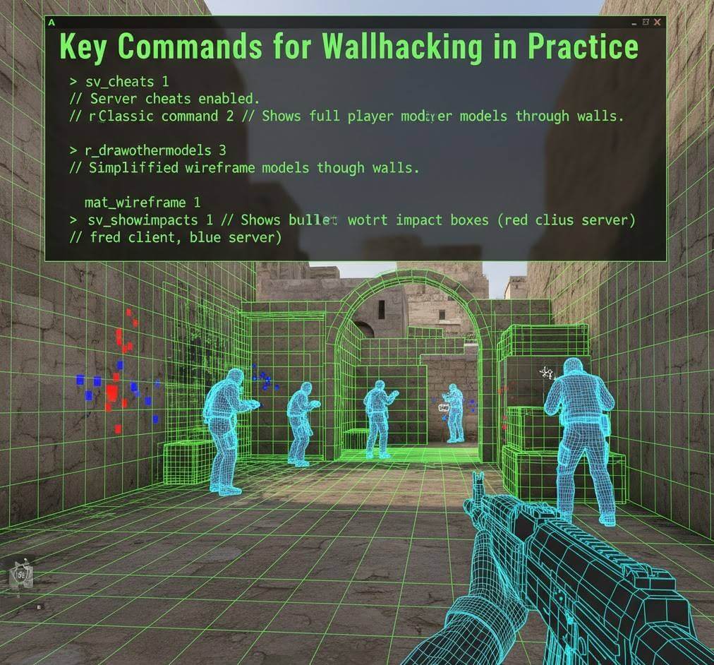 - sv_showimpacts 1: While not a true wallhack, this command is essential for practice. It shows colored boxes where your bullets hit (client-side in red, server-side in blue). This helps you understand bullet penetration through walls and perfect your spray control. Check out our dedicated guide on CS2 weapon stats to pair this knowledge with your favorite guns.